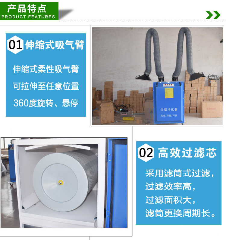 移動式焊煙凈化器 本除塵器由上箱體、灰斗、梯子平臺、支架、脈沖清灰和排灰裝置六部分組成,主要用于移動焊接工位。適用于各種焊接、打磨等場所產(chǎn)生煙塵和粉塵的凈化以及對稀有金屬、貴重物料的回收等;
