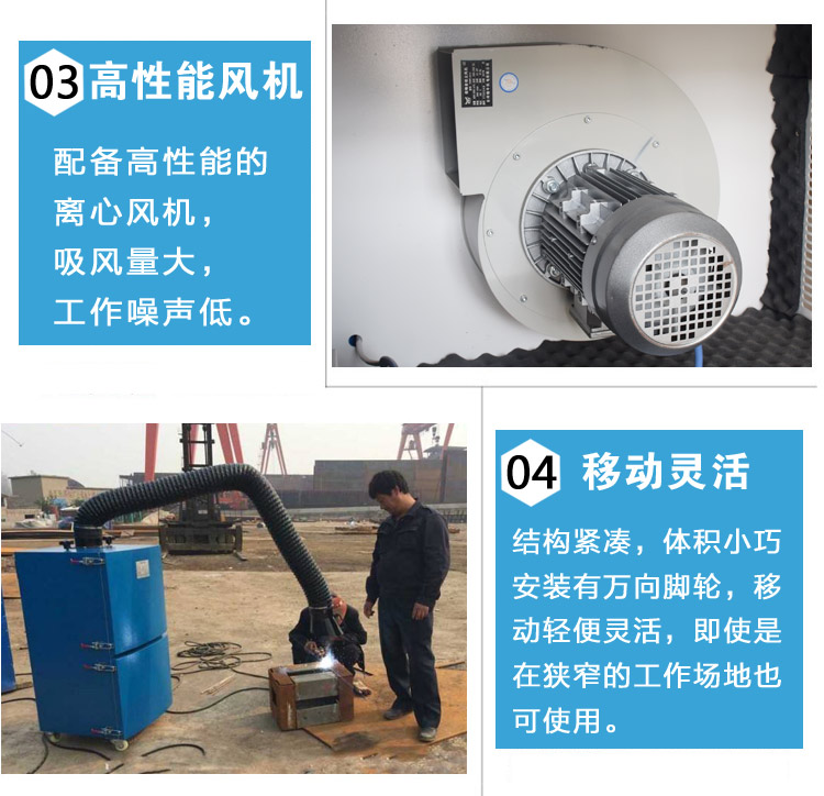 移動式焊煙凈化器 本除塵器由上箱體、灰斗、梯子平臺、支架、脈沖清灰和排灰裝置六部分組成,主要用于移動焊接工位。適用于各種焊接、打磨等場所產(chǎn)生煙塵和粉塵的凈化以及對稀有金屬、貴重物料的回收等;